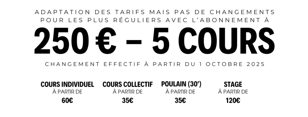 60€/heure ou 50€/heure à partir de 2 cours consécutifs dans la même infrastructure